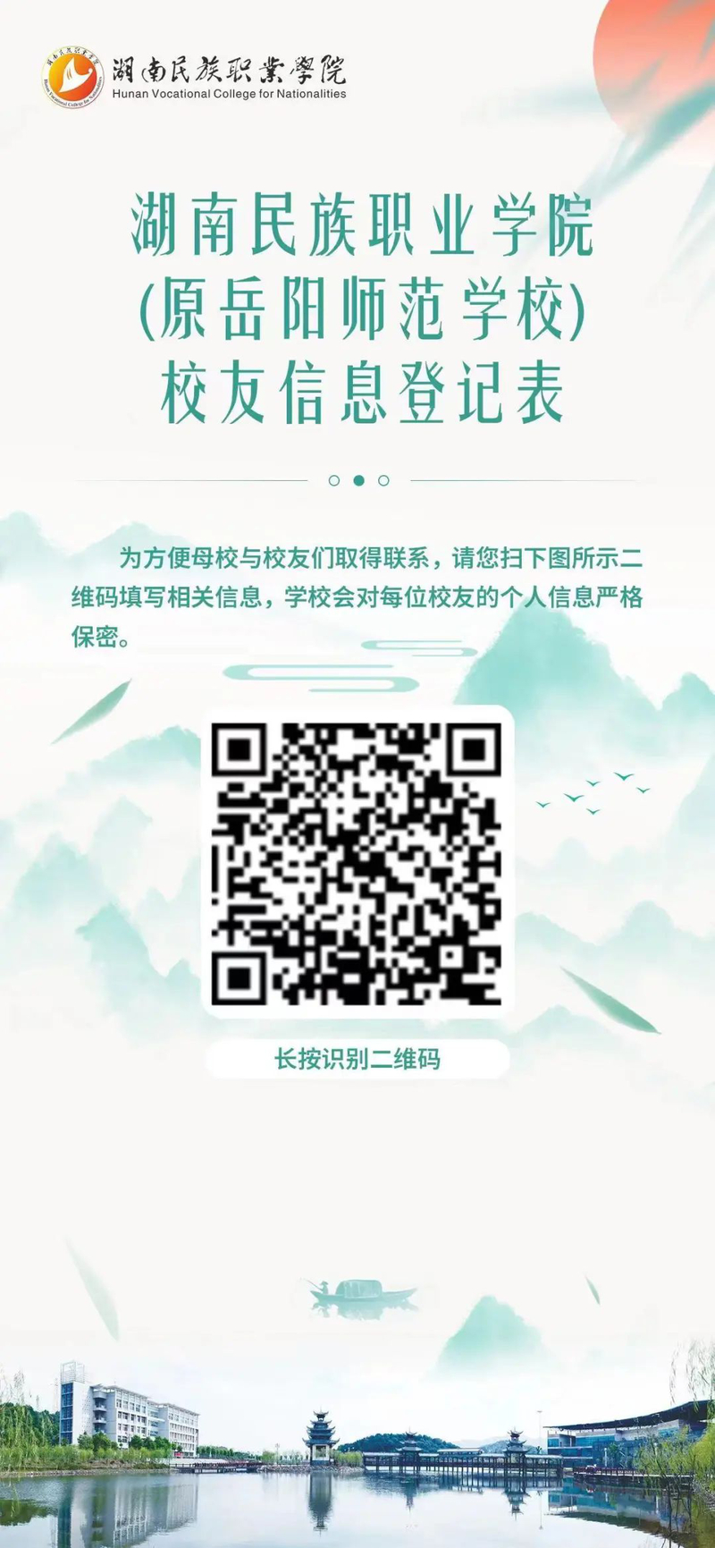 近年来,湖南民族职业学院深入学习贯彻习近平新时代中国特色社会主义思想,以更大的担当和更实的举措,奋力推进各项事业实现了高质量发展。舟至中流水深处,击楫勇进向前头。广大校友是学校最宝贵的财富,是湖南民族职业学院改革发展的见证者、参与者和建设者。为了进一步汲取校友智慧、凝聚校友力量,同时也为了更好地落实湖南省委、省政府“校友回湘”系列活动,学校热切希望海内外各界校友能够积极与母校取得联系,共忆求学岁月、共抒家国情怀,共同绘就家乡和母校高质量发展的崭新华章!